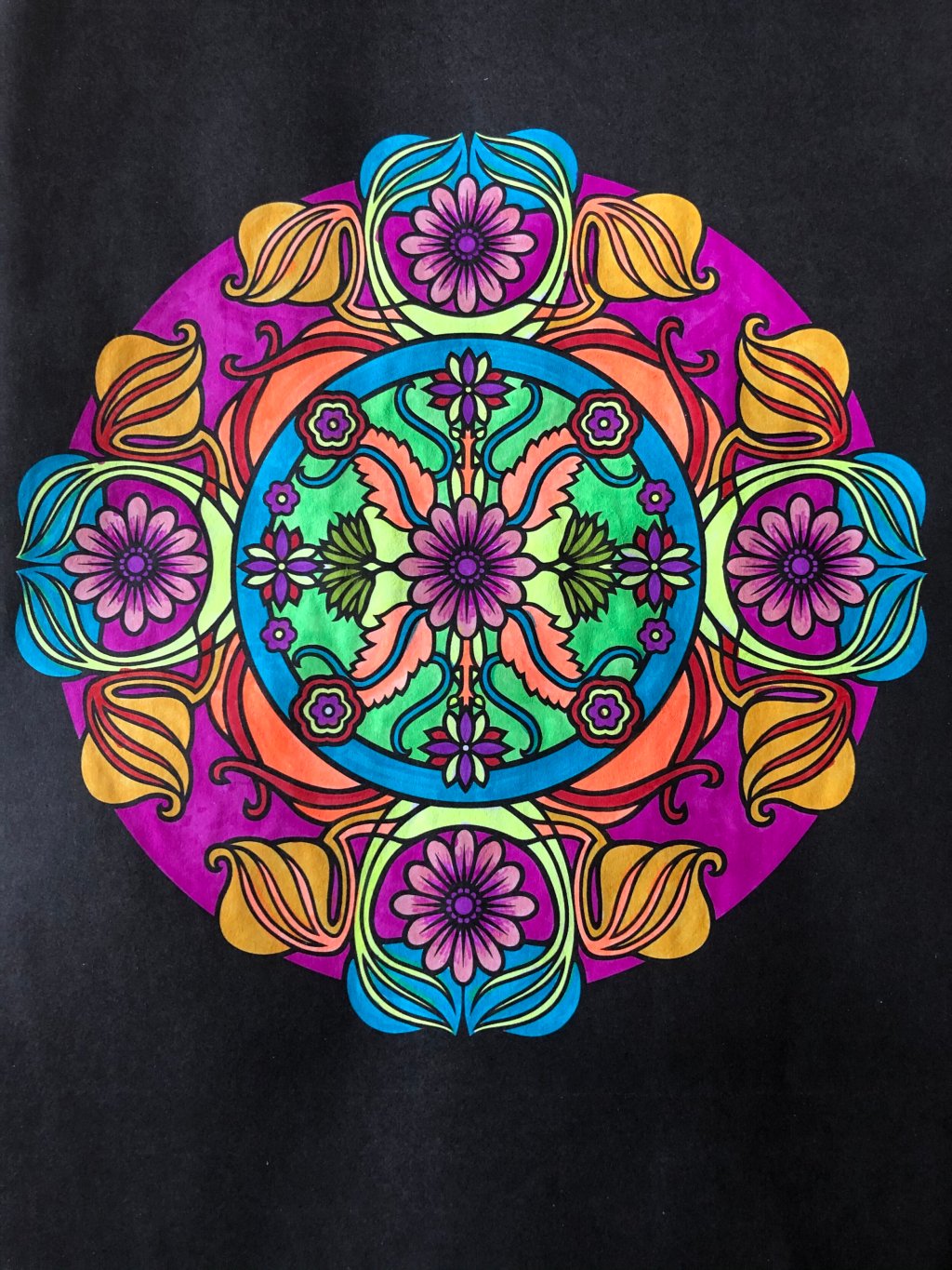 This one which makes me happy to see it is from a book called “Creative Inspirations Mandala Designs” I tried to do a little shading with the purple flowers.