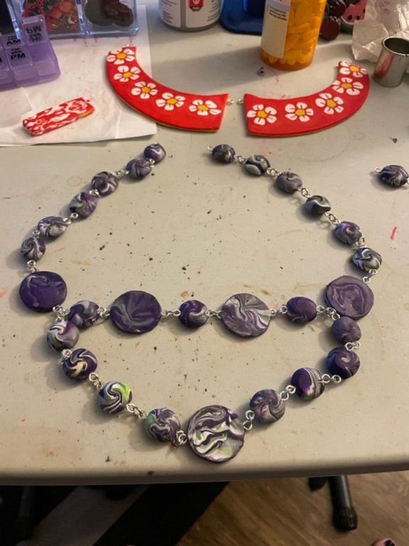 The last 2 pictures are some beads made the same way but with some purple scrap clay. I forgot to take picutes of the pink one but I did remember to take these two.